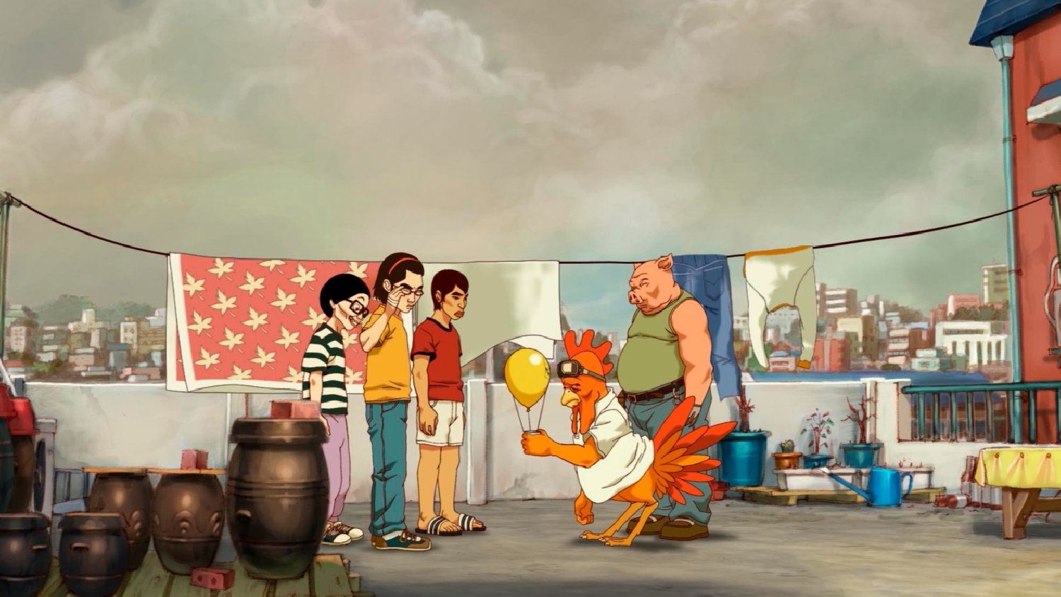 연상호 감독의 작화는 선이 굵고, 현실적이면서도 과감한 움직임이 특징이다. <지옥> 이후 다듬어지긴 했지만 <서울역>(2016)에 이르기까지 이어져 온 스타일이다.